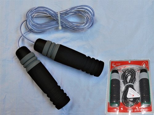 Скакалка 3м, шнур PVC, пластиковые ручки с неопреновыми накладками.